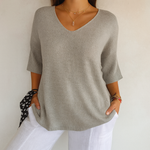 The Sara knitted V-neck top is the perfect embodiment of casual elegance. Designed to be both sophisticated and practical, it offers a clean aesthetic in solid color.